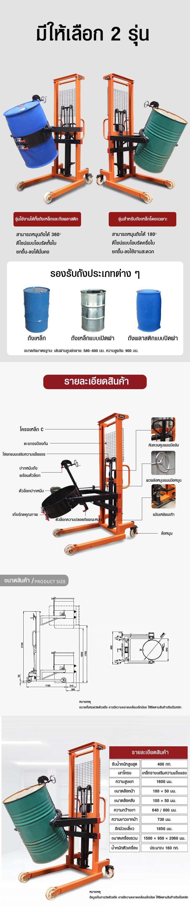 รถยกเทถังน้ำมัน Manual Drum Lifter Hydraulic Drum Stacker 1.6m 400kg
