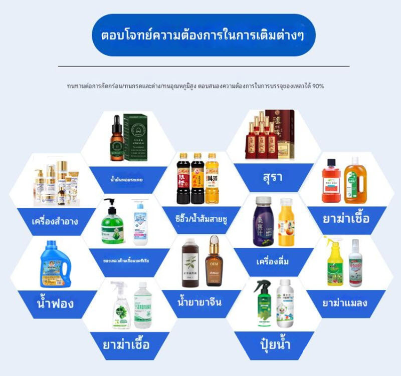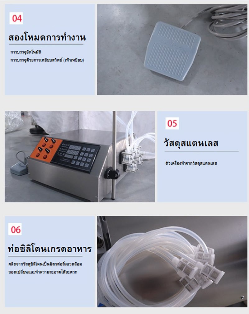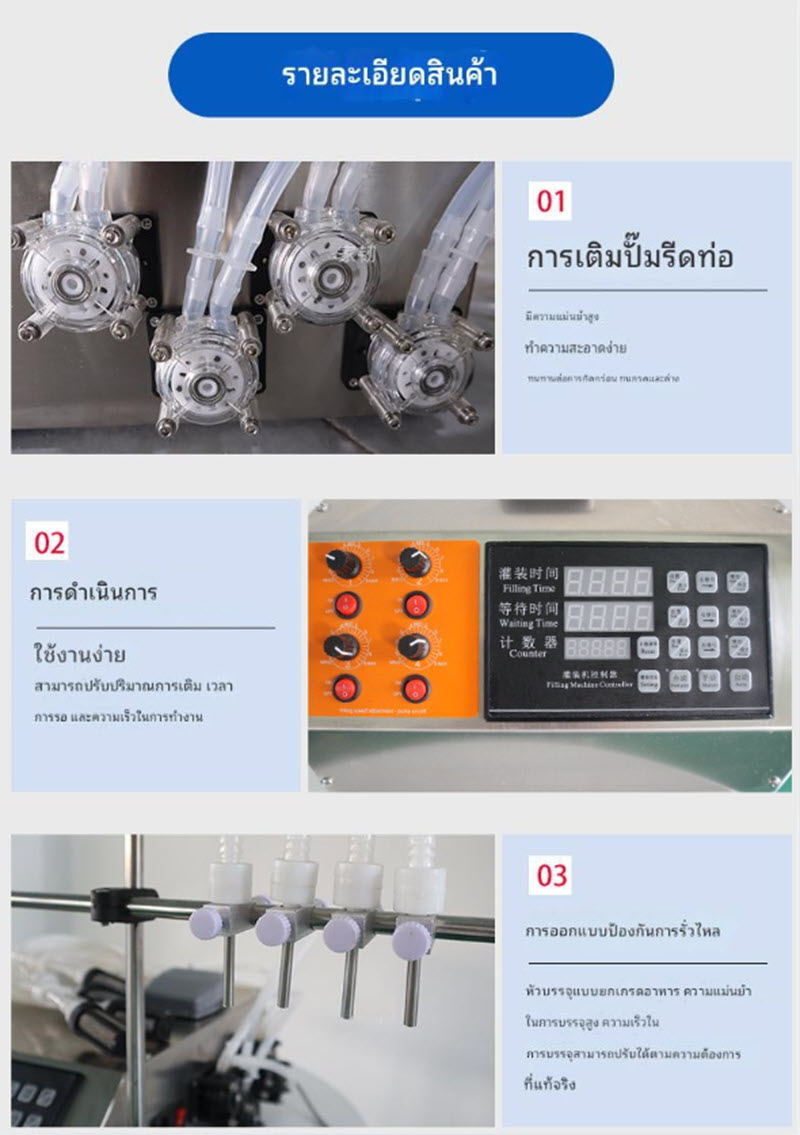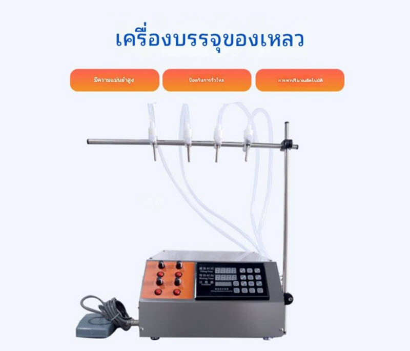 เครื่องบรรจุของเหลวอัตโนมัติแบบตั้งโต๊ะ ระบบดิจิตอล เหมาะสำหรับบรรจุของเหลวใส เช่น น้ำดื่ม น้ำผลไม้ สารเคมีบางชนิด ปรับความเร็วและปริมาตรได้อย่างแม่นยำ ใช้งานง่าย ประหยัดเวลา เพิ่มประสิทธิภาพการผลิต