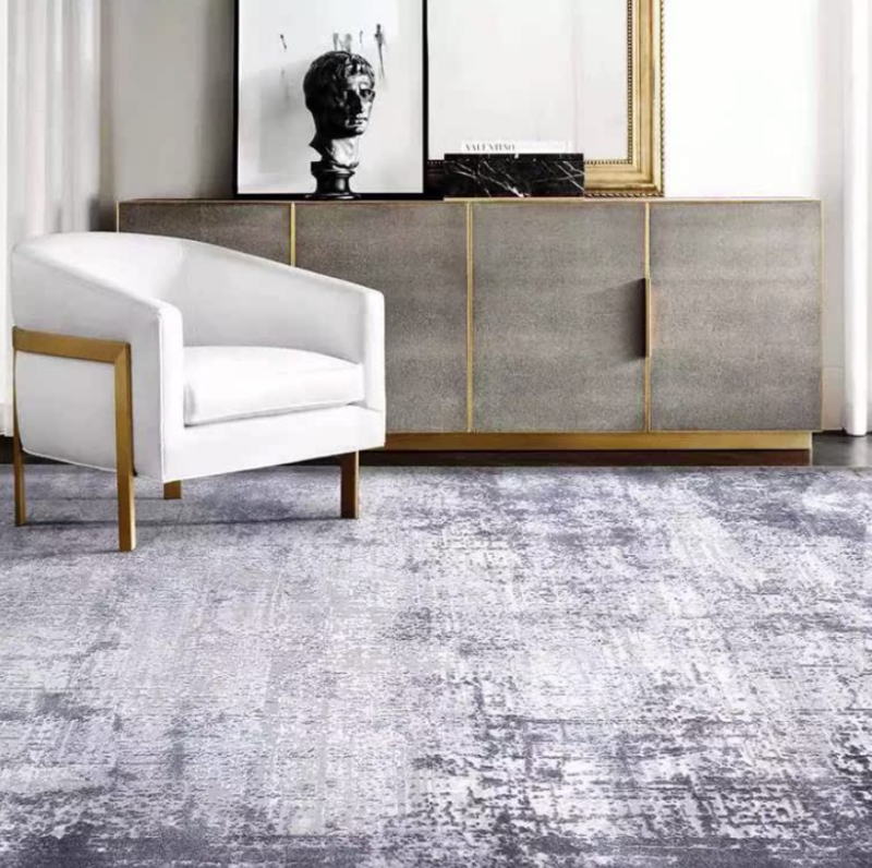 พรมแต่งบ้านดีไซน์โมเดิร์นลายกราฟิกโทนสีฟ้า เทา และเบจ คุณภาพสูง จากประเทศตุรกี สัมผัสนุ่มแน่น ทอแน่นทนทาน ไม่หลุดลุ่ยง่าย เหมาะสำหรับห้องนั่งเล่น ห้องนอน หรือพื้นที่ตกแต่งสไตล์มินิมอล-ร่วมสมัย พร้อมขนาดให้เลือกหลากหลาย รองรับพื้นที่ขนาดเล็กถึงใหญ่