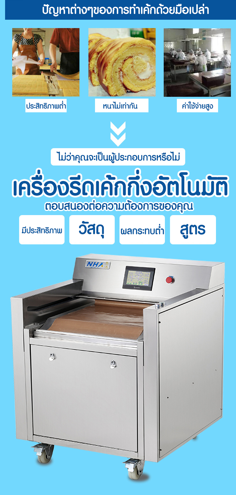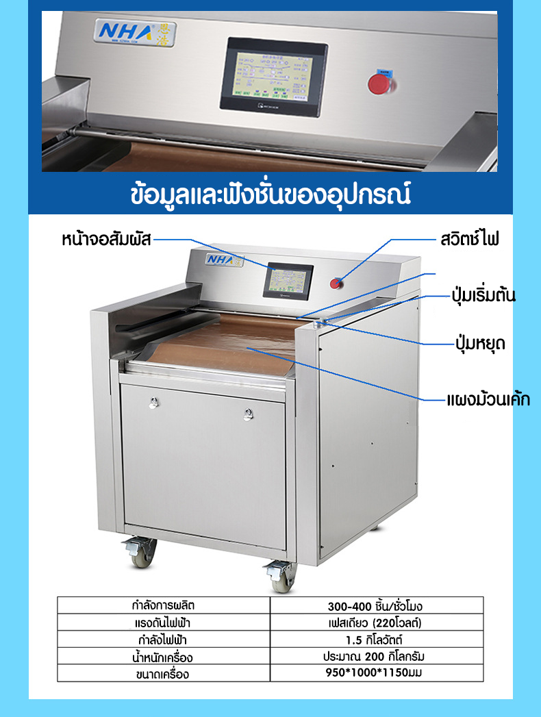 เครื่องม้วนแยมโร NH401 200Kg ขนาดกว้าง 400mm 220V 1230*1360*1060mm 300pcs/hr