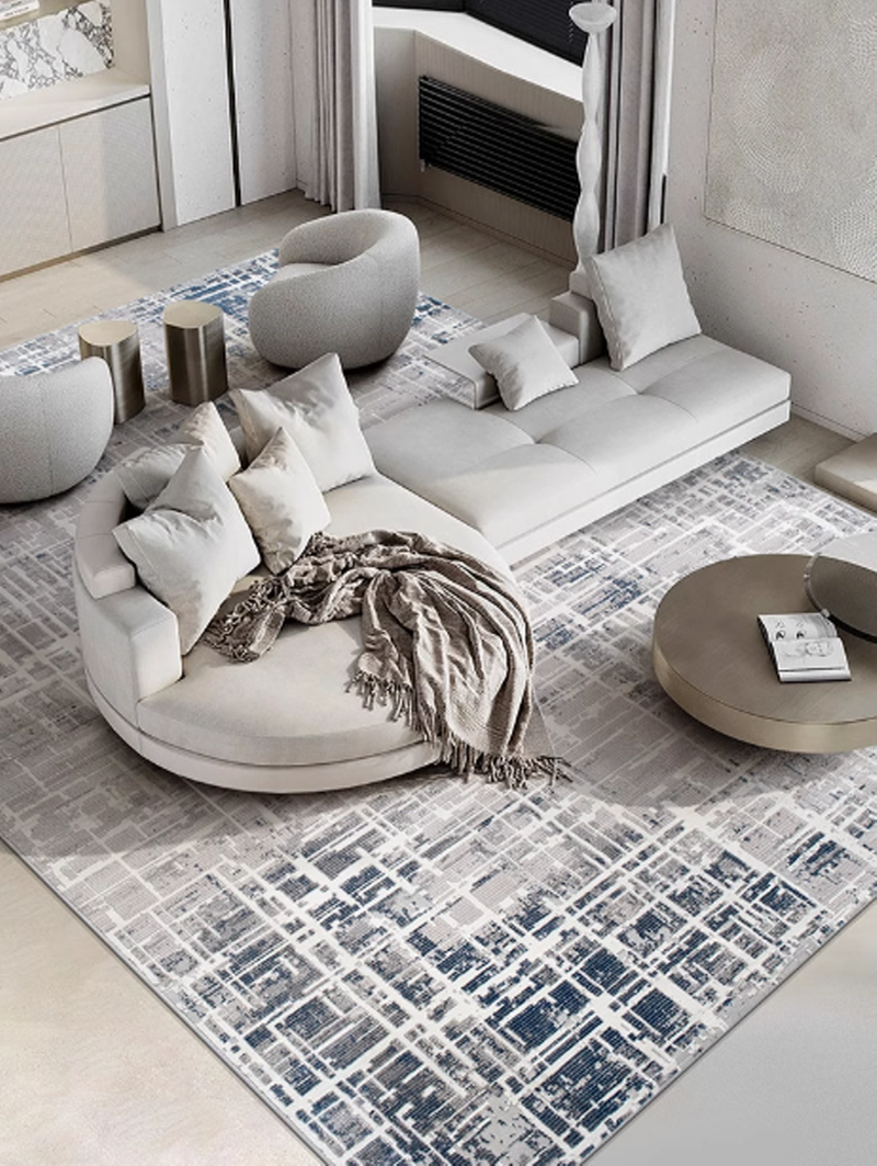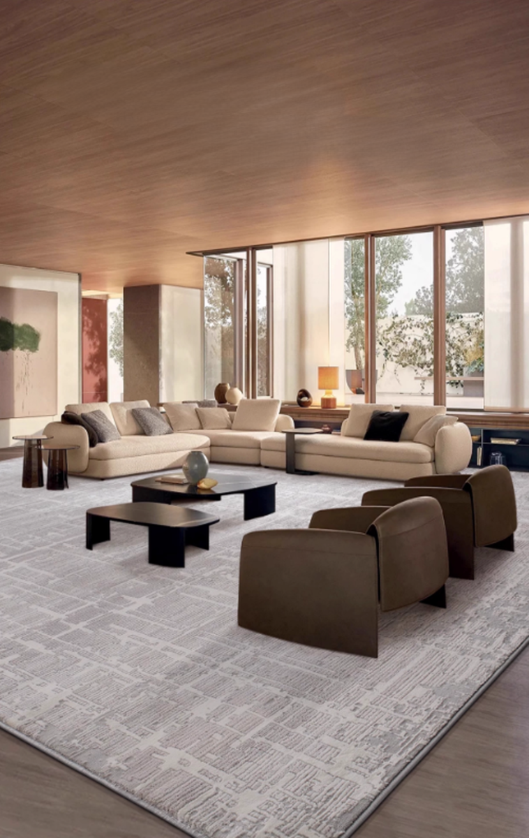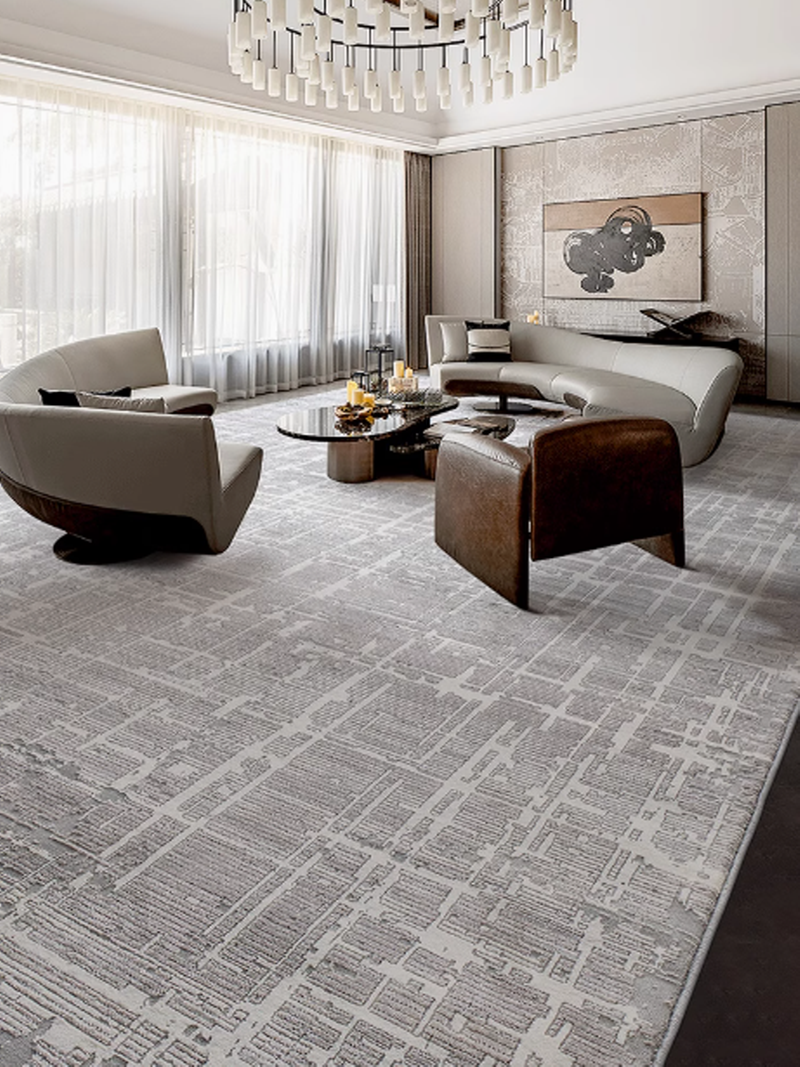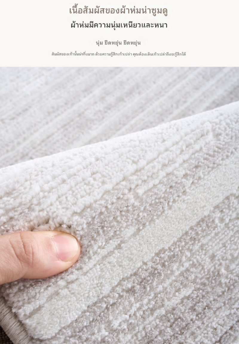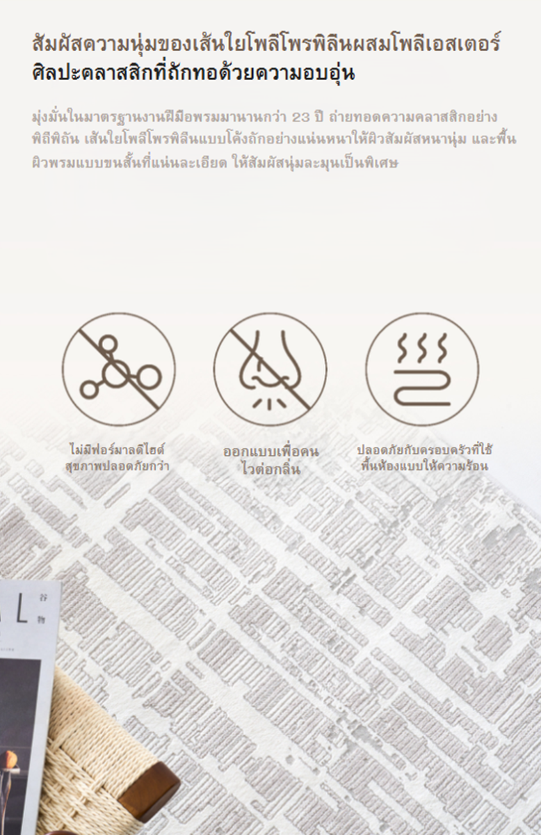 พรมทอคุณภาพสูงจากตุรกีโดดเด่นด้วยลวดลายกราฟิกแนวมินิมอลในโทนสีขาวนวลผสมเส้นเงา สวยงามทันสมัยให้สัมผัสนุ่ม เบา และคงทน เหมาะสำหรับตกแต่งห้องนั่งเล่น ห้องรับแขก หรือห้องพักผ่อน