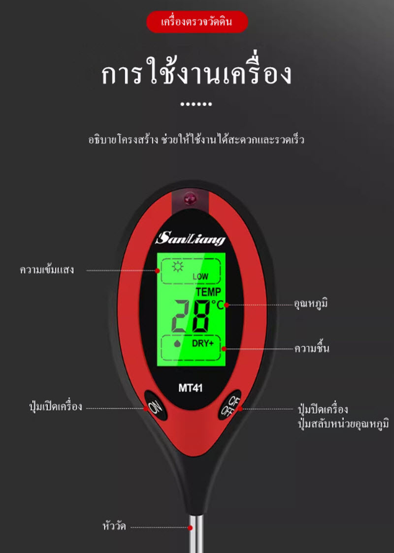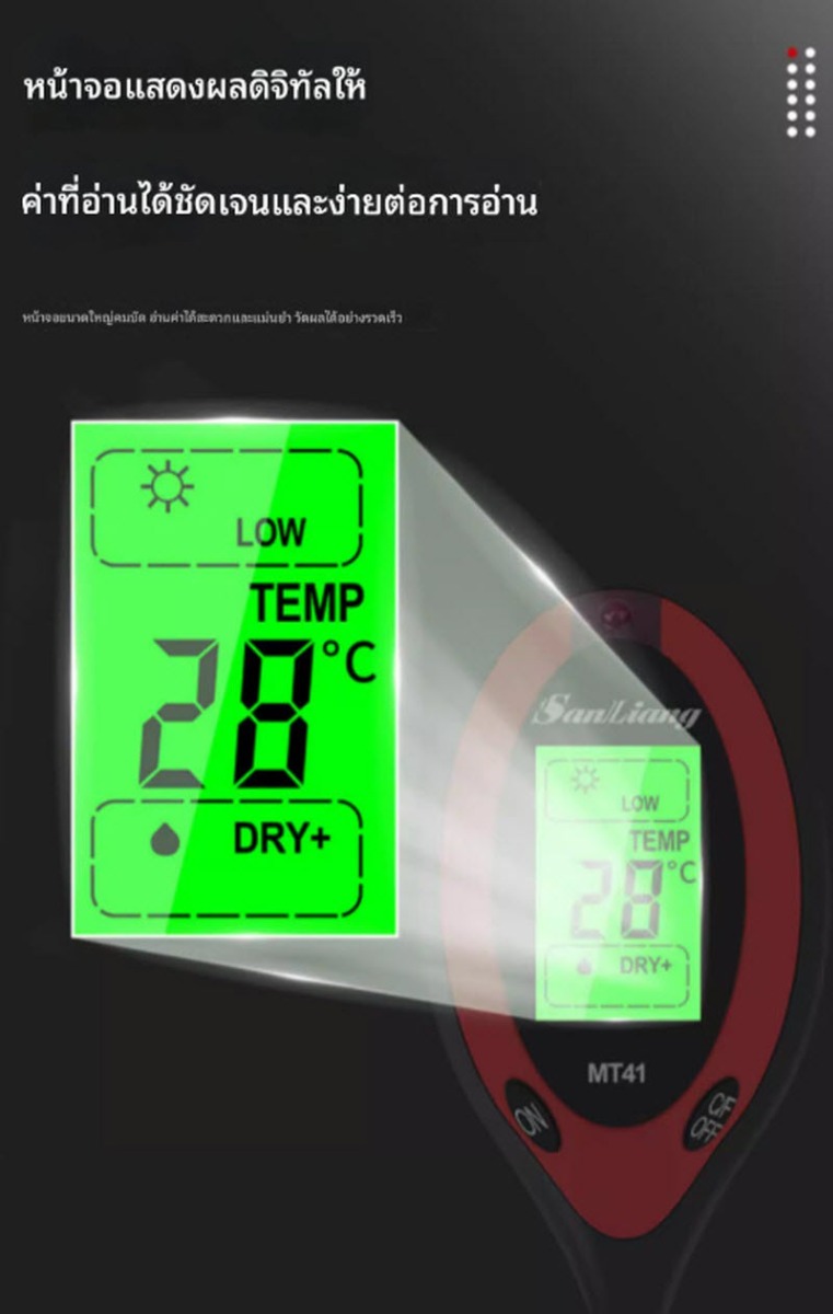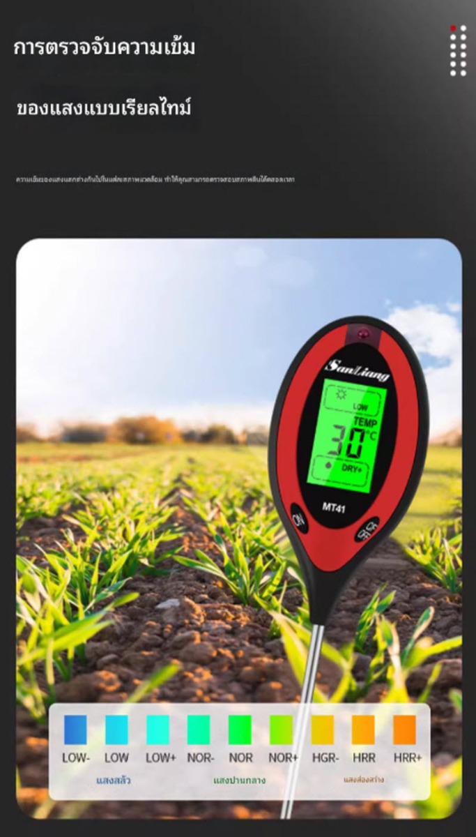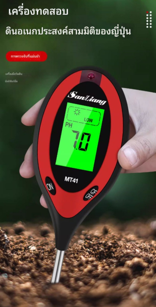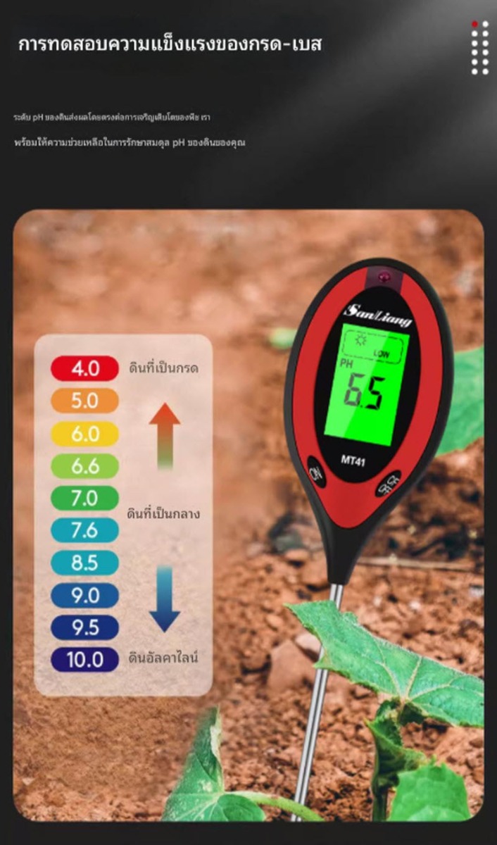 เครื่องวัดกรดด่างในดิน รุ่น MT41 ออกแบบสำหรับงานเกษตรและงานวิจัย ช่วยตรวจวัดค่า pH ของดินและอุณหภูมิดินได้อย่างสะดวก รวดเร็ว ใช้งานง่าย เหมาะสำหรับการปลูกพืช ผัก ไม้ผล และการปรับปรุงคุณภาพดินให้เหมาะสมต่อการเพาะปลูก
