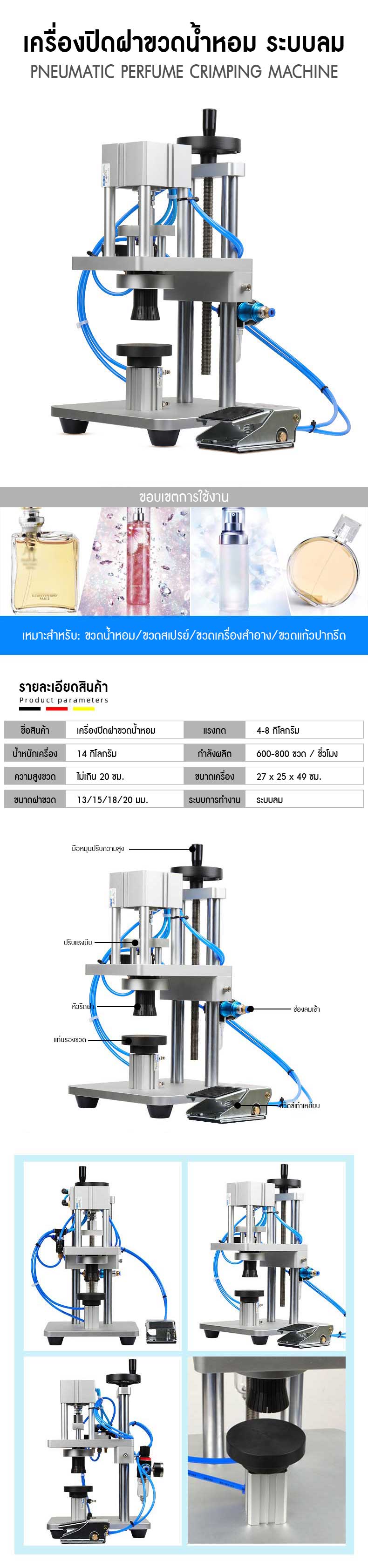 เครื่องปิดฝาขวดน้ำหอม ระบบลม Pneumatic Perfume Crimping Machine รุ่น WT-80ZP เครื่องปิดฝาขวด รีดฝาขวด น้ำหอม
