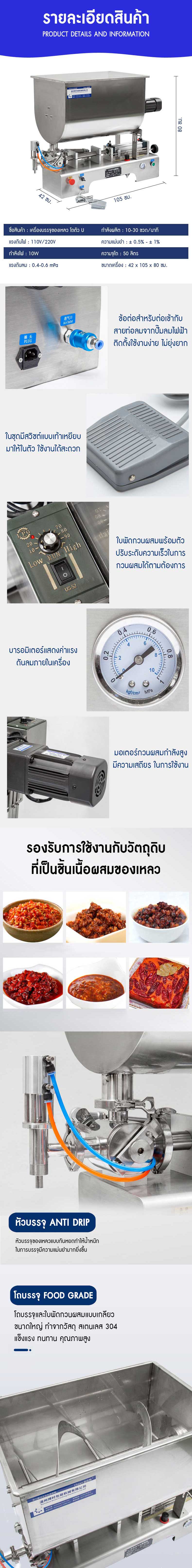 เครื่องบรรจุของเหลว Pneumatic U-Shape Liquid Filling Machine โถตัว U บรรจุพริกแกง น้ำจิ้ม
