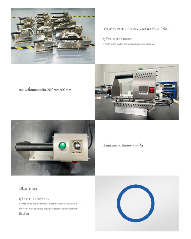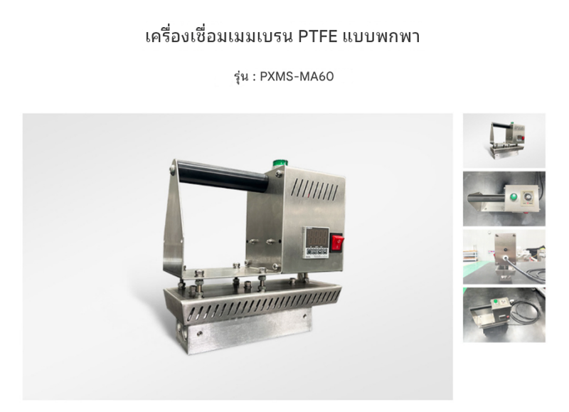 เครื่องเชื่อมฟิล์ม PTFE รุ่น PXMS-MA60 แบบพกพา ขนาดกะทัดรัด น้ำหนักเบา ใช้งานง่าย เหมาะสำหรับเชื่อมฟิล์มเทฟลอนในงานอุตสาหกรรมที่ต้องการความแม่นยำสูง สามารถปรับอุณหภูมิและเวลาเชื่อมได้ พร้อมระบบแจ้งเตือนเพื่อความปลอดภัย