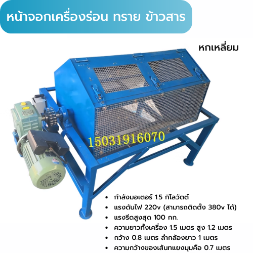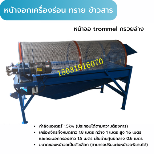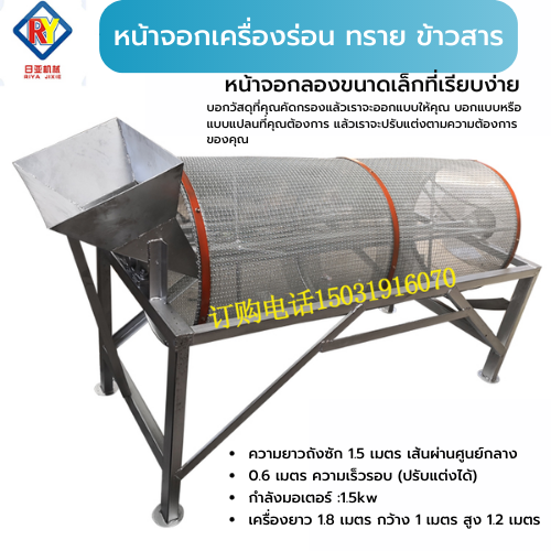 เครื่องร่อน ทราย ข้าวสาร ทรงกระบอก ทรงแปดหลี่ยม rotary sieve drum sand screen machine มอเตอร์ 1.5 kw, 3kw, 4kw ไฟ220/380v สั่งทำ