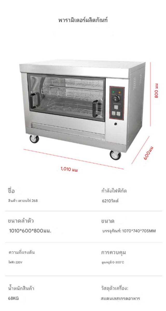 คุณกำลังรีวิว:เตาอบไก่ระบบหมุน ขนาดกลาง สำหรับร้านอาหาร เชิงพาณิชย์ Rotating Chicken Oven - Commercial Use 4.7kW/220V