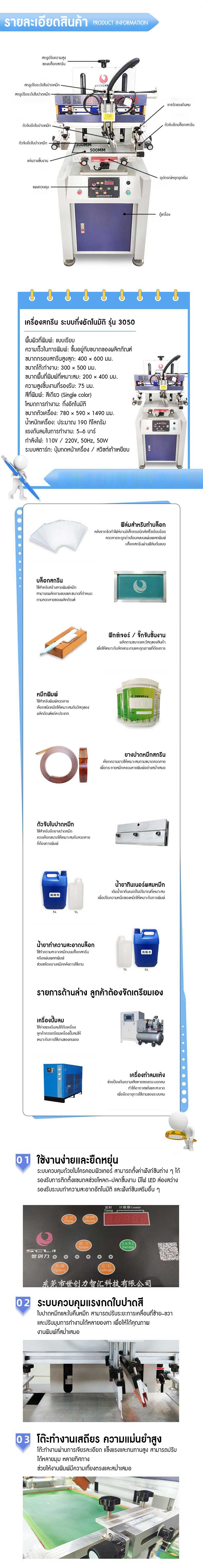 เครื่องสกรีน ระบบกึ่งอัตโนมัติ Semi-Auto Screen Printing Machine รุ่น 3050 สำหรับงานสกรีนพื้นเรียบ
