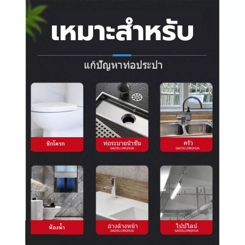 - สำหรับขจัดสิ่งอุดตันภายในท่อน้ำทิ้งต่าง ๆ ในห้องน้ำ เช่น โถปัสสาวะตัน, อ่างล้างหน้าตัน, อ่างล้างภาชนะ, ท่อน้ำทิ้งตัน (Floor Drain), ชักโครกตัน, ส้วมอุดตัน