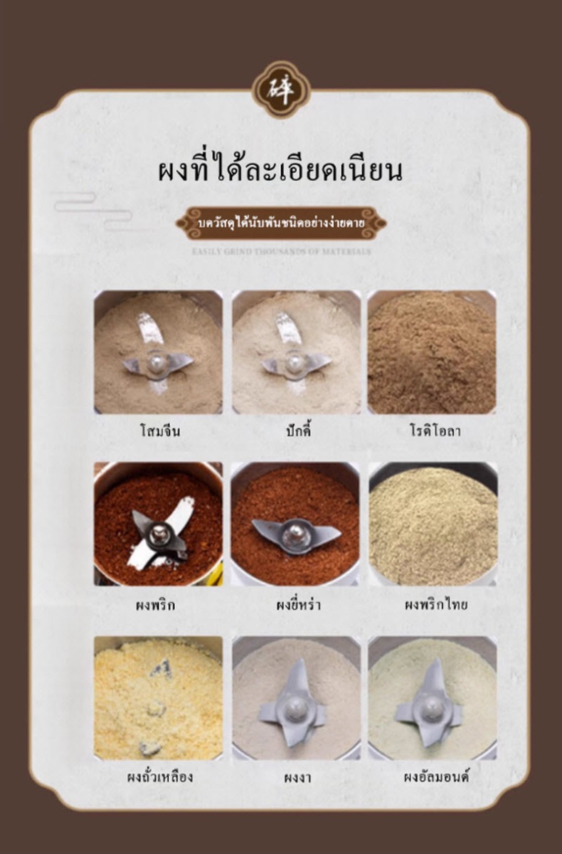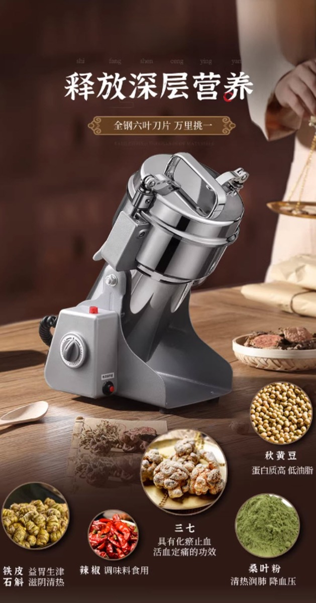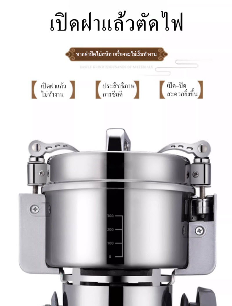 เครื่องบดผงสแตนเลสกำลังสูง เหมาะสำหรับบดวัตถุดิบแห้งให้ได้ผงละเอียด เช่น สมุนไพร เครื่องเทศ ธัญพืช เมล็ดพืช และวัตถุดิบอาหารต่าง ๆ ตัวเครื่องทำจากสแตนเลส แข็งแรง ทนทาน มอเตอร์รอบจัด บดได้ละเอียดสม่ำเสมอ ใช้งานง่าย เหมาะทั้งร้านค้า โรงงานขนาดเล็ก และครัวเชิงพาณิชย์