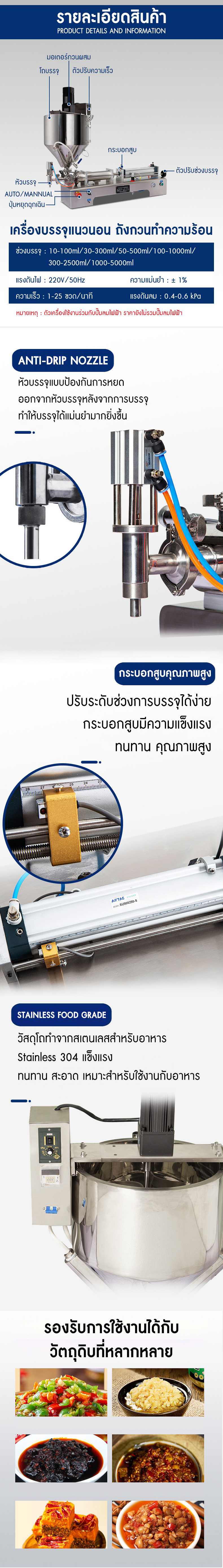 เครื่องบรรจุของเหลว สำหรับของเหลวหนืด Stirring and Heating Liquid Filling Machine ทำจากสเตนเลส 304 พร้อมมอเตอร์สำหรับกวน และ ทำความร้อน