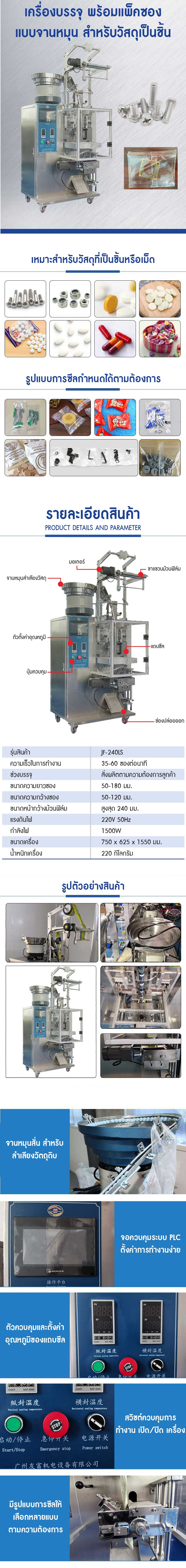 คุณกำลังรีวิว:เครื่องบรรจุ พร้อมแพ็คซอง Quantitative Weighting Packing Machine รุ่น JF-240 แบบจานหมุน สำหรับวัสดุเป็นชิ้น