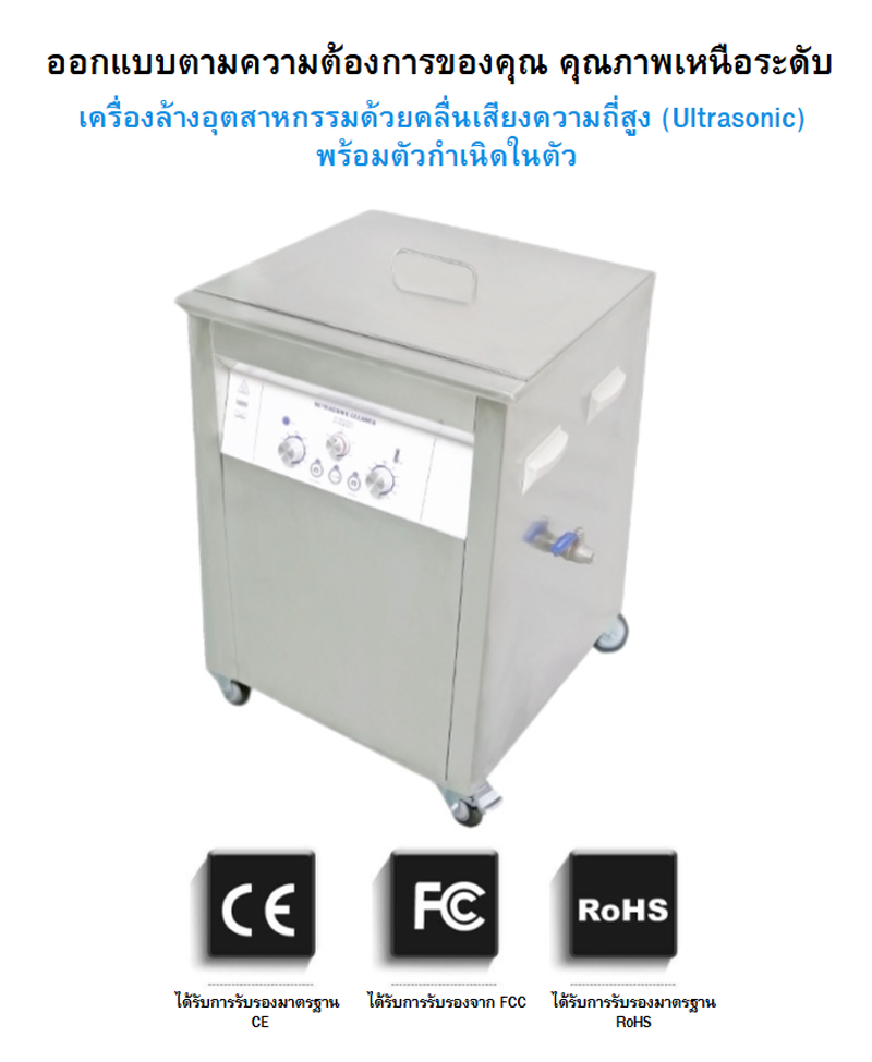 เครื่องทำความสะอาดด้วยคลื่นเสียงความถี่สูง รุ่น MH500 ความจุ 50 ลิตร ให้ประสิทธิภาพการล้างล้ำลึกด้วยคลื่นเสียง 40 kHz พร้อมระบบทำความร้อนในตัว เหมาะสำหรับอุตสาหกรรมที่ต้องการความสะอาดสูง เช่น ชิ้นส่วนเครื่องจักร อะไหล่ อุปกรณ์เครื่องมือแพทย์ และอิเล็กทรอนิกส์