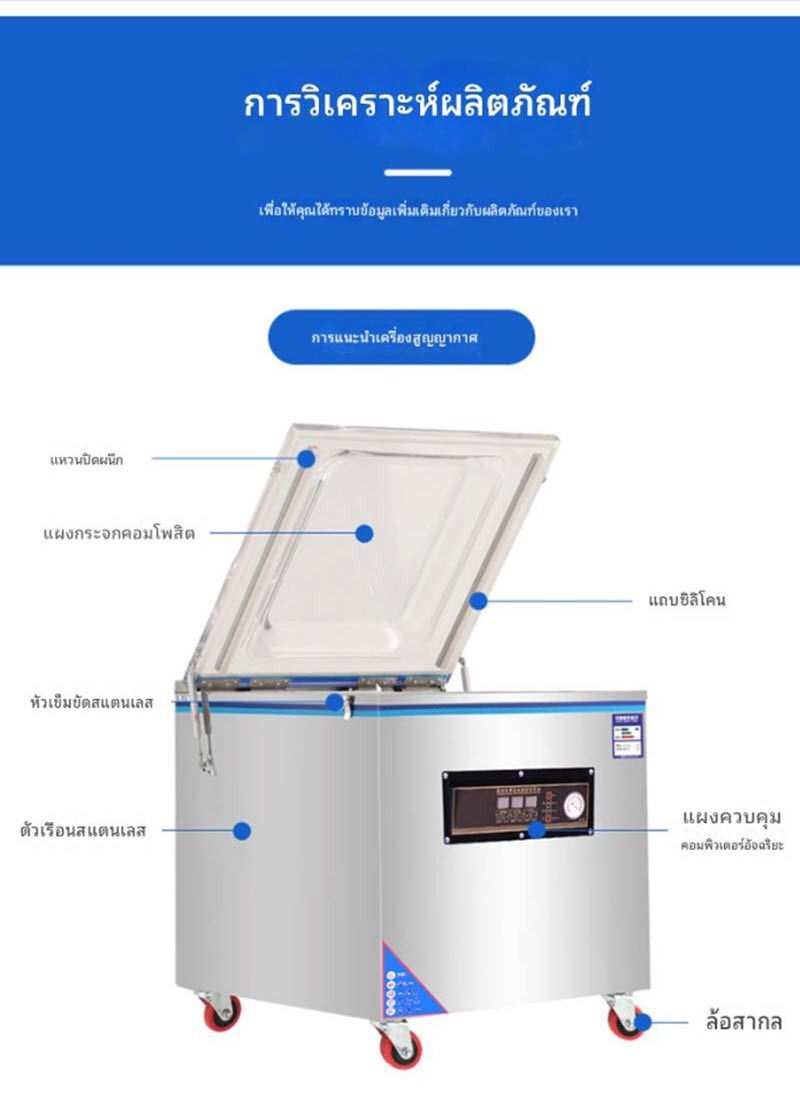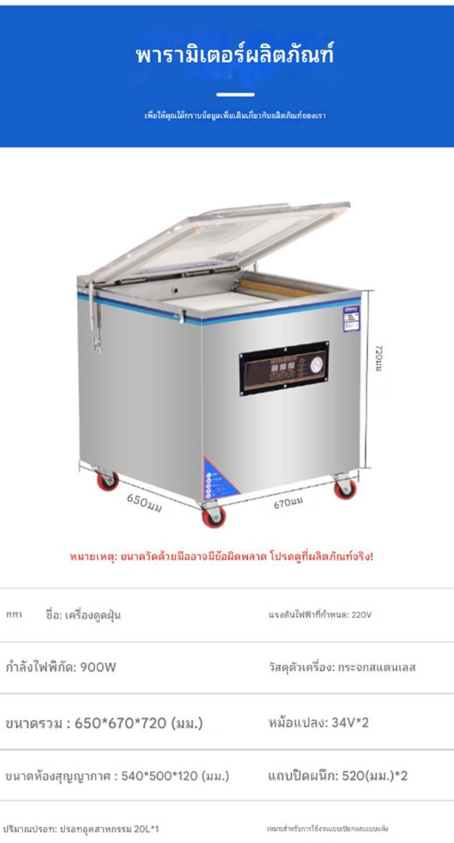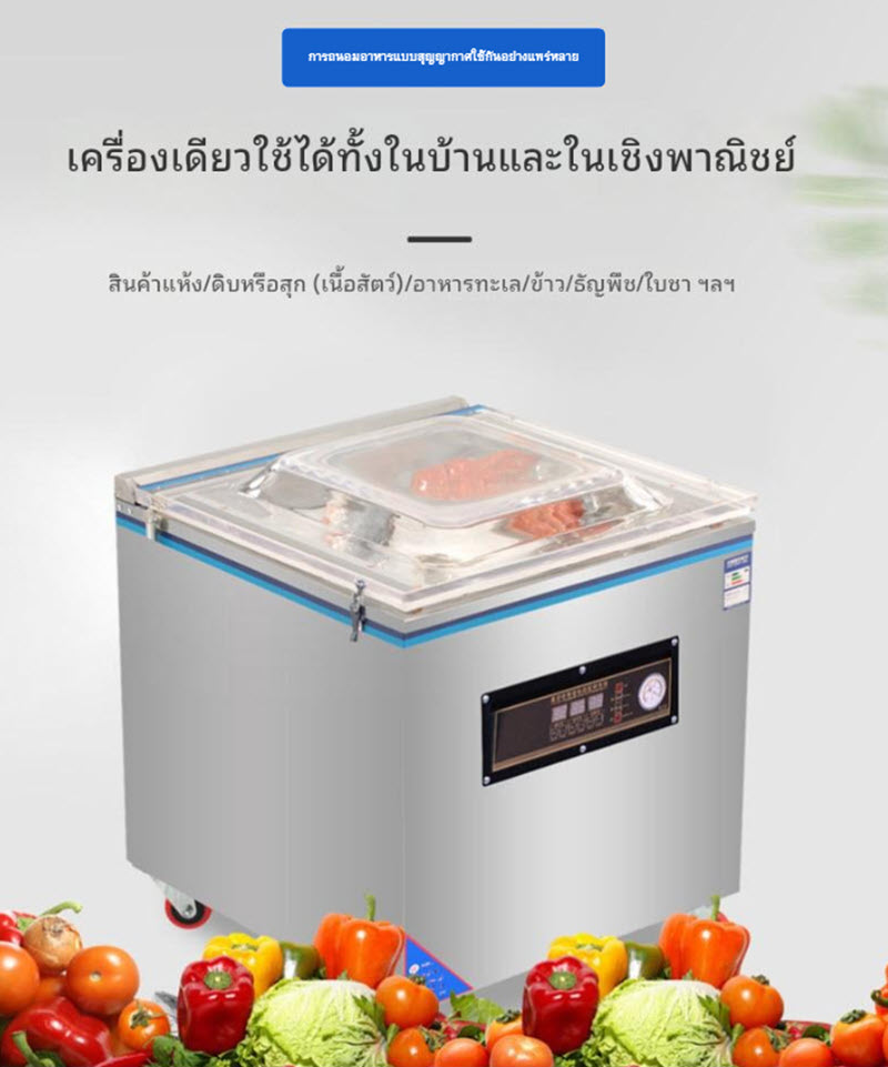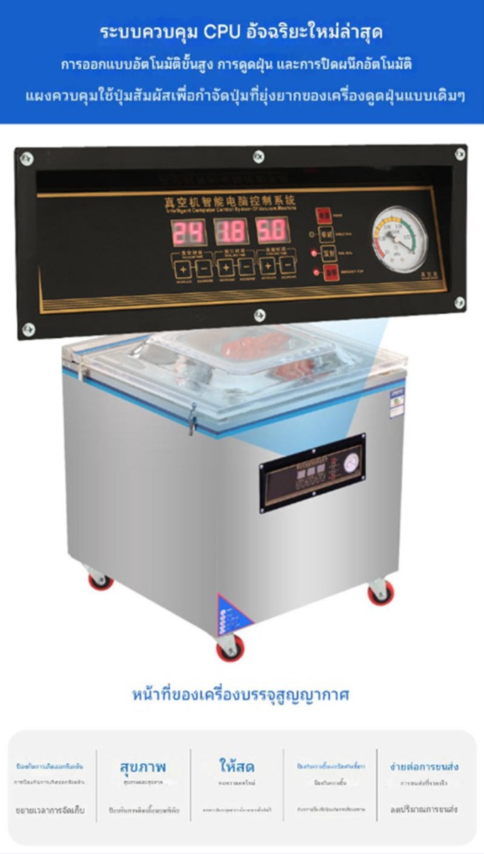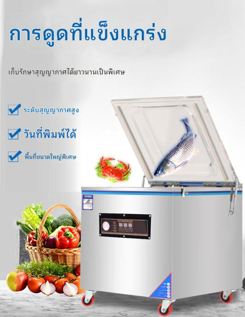 เครื่องบรรจุสุญญากาศ รุ่น 520 โครงสร้างสแตนเลส แข็งแรง ทนทาน ใช้งานได้ทั้งของแห้งและของเปียก ขนาดแถบซีลกว้างถึง 520 มม. พร้อมระบบซีล 2 แถบ พลังมอเตอร์ 900 วัตต์ เหมาะสำหรับงานบรรจุภัณฑ์อุตสาหกรรมทั่วไปหรือเชิงพาณิชย์