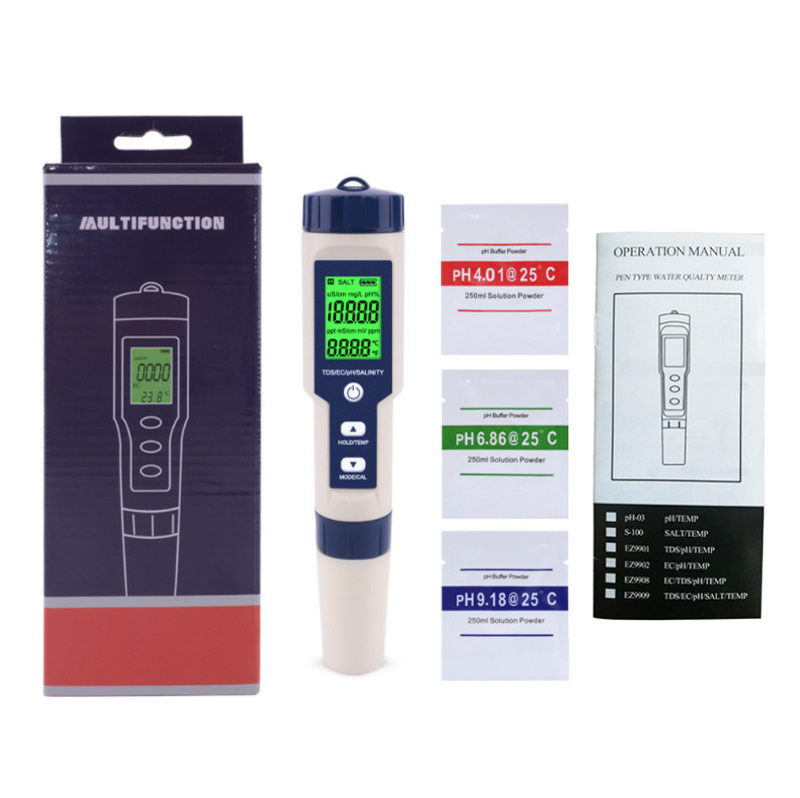 เครื่องวัดคุณภาพน้ำแบบ 7-in-1 รุ่น C-600 ใช้งานง่าย แม่นยำ วัดค่า TDS, EC, pH, เกลือ, อุณหภูมิ และค่าอื่นๆ ครบถ้วน เหมาะสำหรับตรวจสอบคุณภาพน้ำดื่ม สระว่ายน้ำ โรงงาน และการเกษตร