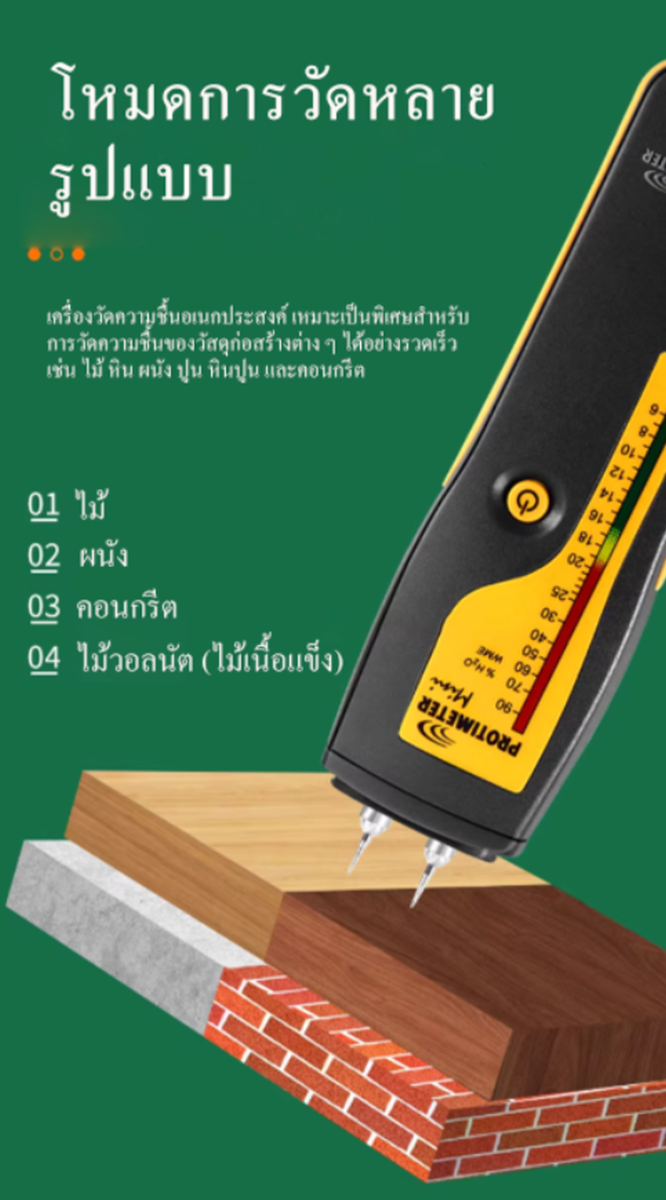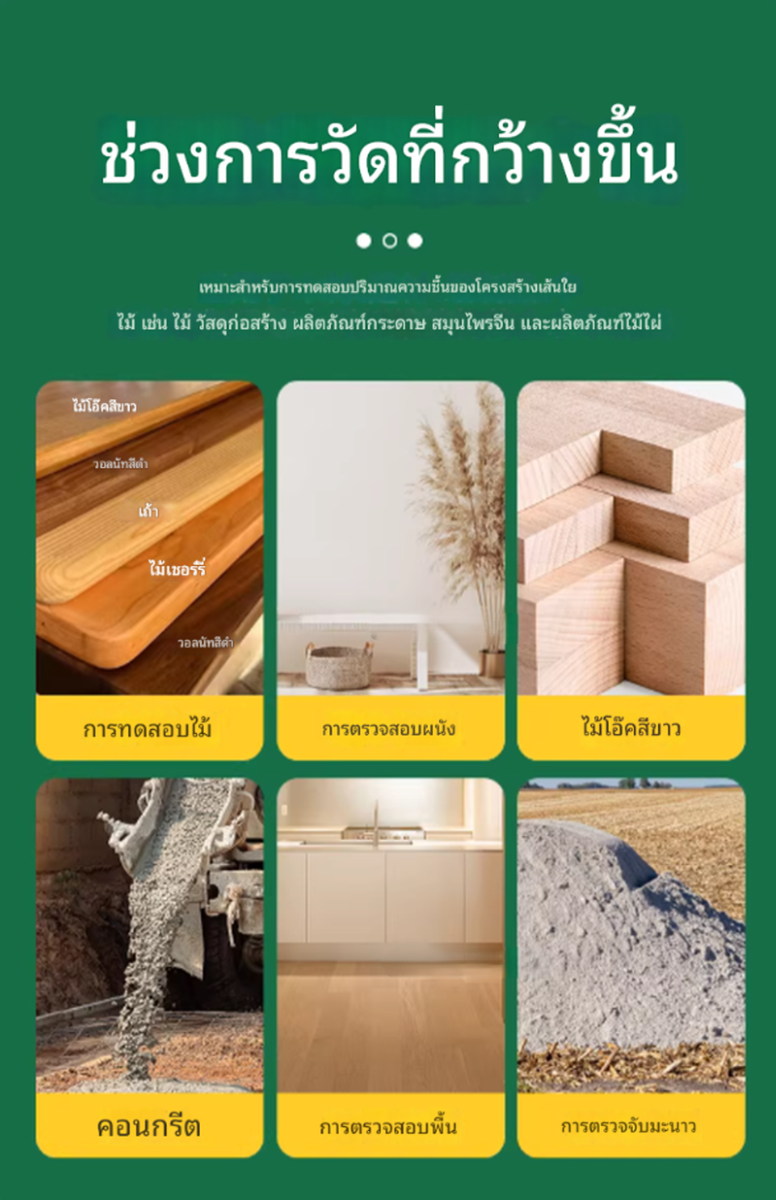 เหมาะสำหรับงานไม้ งานก่อสร้าง งานเฟอร์นิเจอร์ และการตรวจสอบความชื้นของวัสดุไม้ก่อนใช้งานจริง