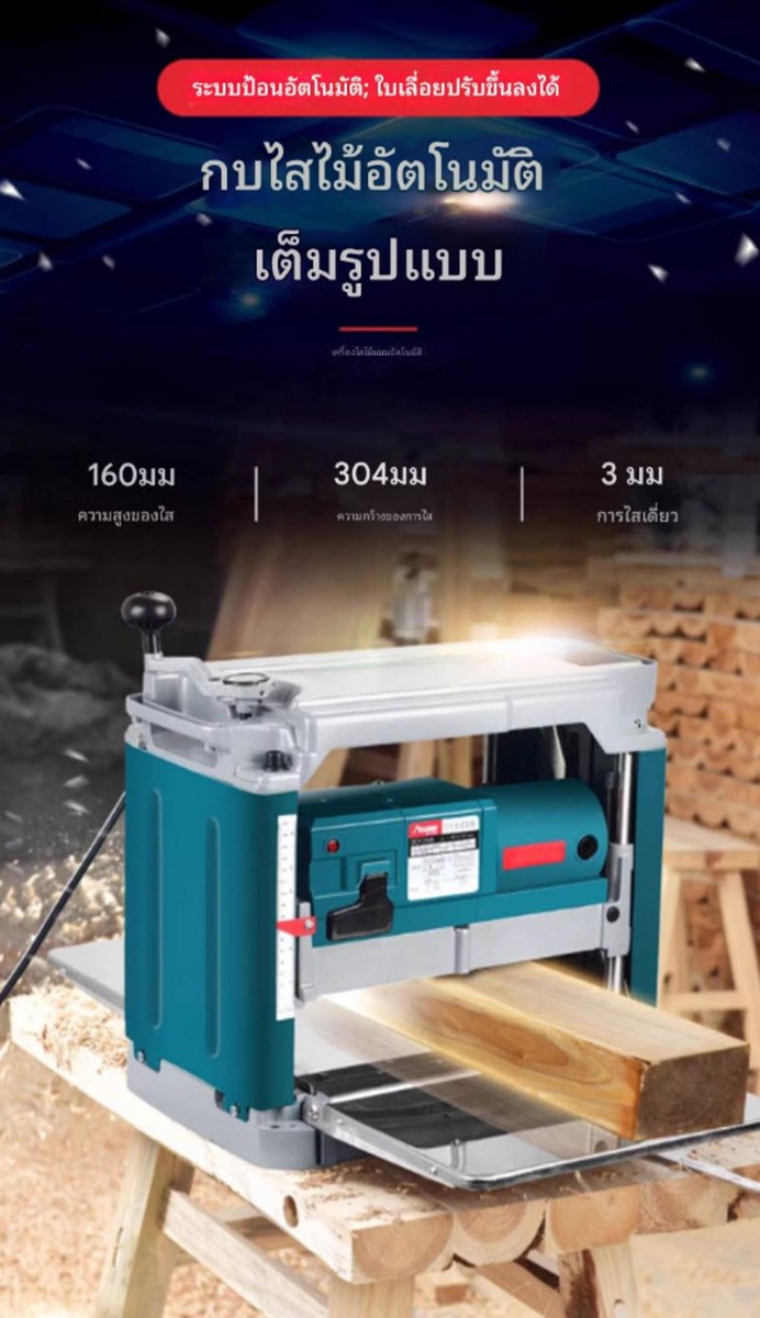 เครื่องไสไม้ไฟฟ้า 12 นิ้ว กำลังมอเตอร์ 1,850 วัตต์ เหมาะสำหรับงานไสไม้ให้เรียบ สม่ำเสมอ และได้ขนาดแม่นยำ รองรับความกว้างงานสูงสุด 304 มม. ปรับความลึกการไสได้ตามขนาดชิ้นงาน ใช้งานได้ทั้งงานไม้ทั่วไป งานเฟอร์นิเจอร์ และงานช่างไม้เชิงพาณิชย์