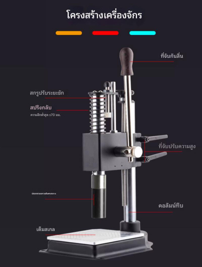 เครื่องกดฝา ปิดฝาขวดน้ำหอม รุ่น WT-90CX เป็นเครื่องกดฝาแบบแมนนวล (Manual Crimping Machine) สำหรับงานบรรจุภัณฑ์น้ำหอม เครื่องสำอาง และขวดแก้วขนาดเล็ก ให้แรงกดสูงถึง 250 กก. โครงสร้างแข็งแรง ขนาดกะทัดรัด ใช้งานง่าย เหมาะสำหรับโรงงานขนาดเล็ก–กลาง และผู้ผลิตแบรนด์ OEM/ODM