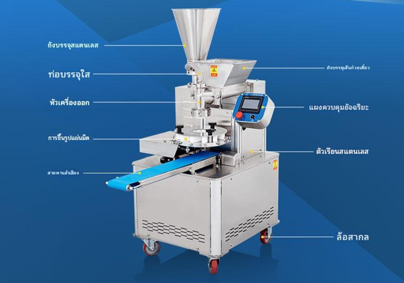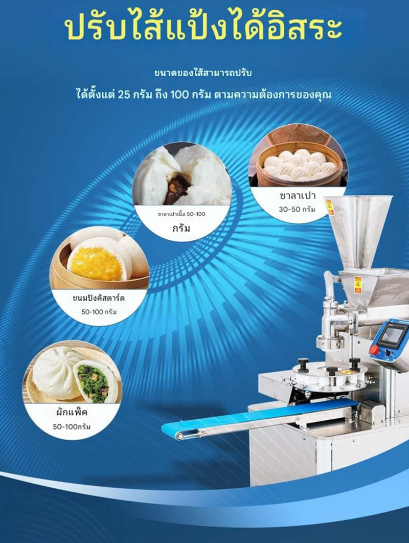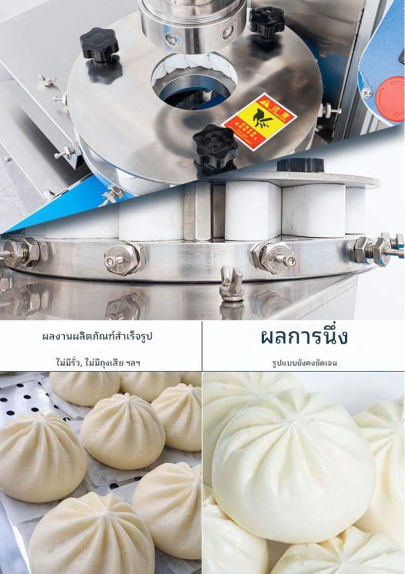 เครื่องปั้นซาลาเปาอัตโนมัติ ประสิทธิภาพสูง รองรับการผลิตสูงสุด 1,800 ชิ้นต่อชั่วโมง ปรับขนาดซาลาเปาได้ตามต้องการ โครงสร้างแข็งแรง ใช้งานง่าย เหมาะสำหรับโรงงานและธุรกิจอาหาร ขับเคลื่อนด้วยมอเตอร์ทรงพลัง 1.2KW รองรับไฟ 220V/380V ประหยัดแรงงานและเพิ่มกำลังการผลิต